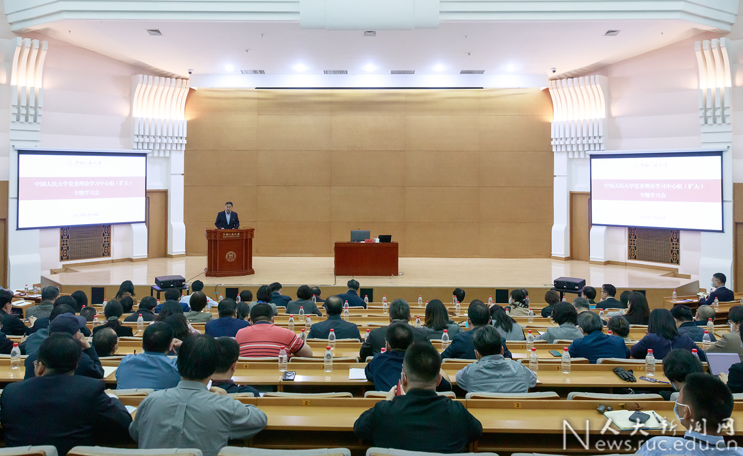学校领导吴付来、郑水泉、王易、叶康涛,学校党委常委青格勒图,全体中层干部参加专题学习会。