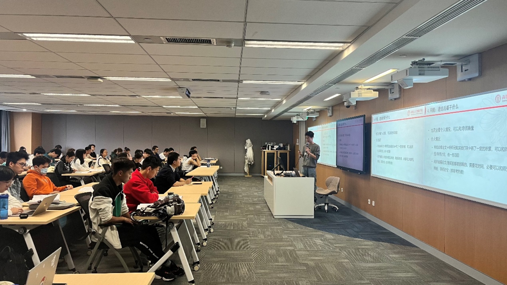 窦志成副院长在开场致辞中指出,人工智能领域的快速发展对学生的综合素质提出了更高的要求,课堂学习已不足以应对未来的多样化挑战。他指出,参与科研活动不仅能够培养学生的自学能力和解决复杂问题的能力,还可以帮助学生在理解已有成果的基础上拓展前沿领域的知识,为未来职业发展奠定坚实基础。他还提到,相较于往年,今年学院全面规划了科研领航计划的内容,以更好地服务同学们的成长。他鼓励新生充分利用学院提供的科研资源,积极探索并找到符合个人兴趣的研究方向。