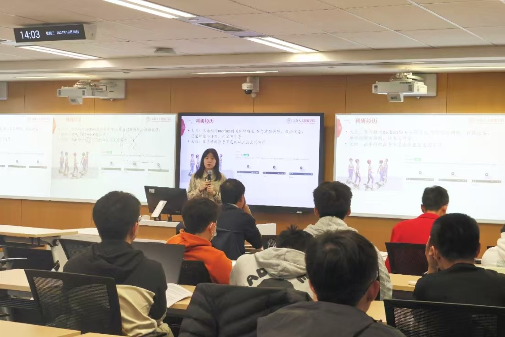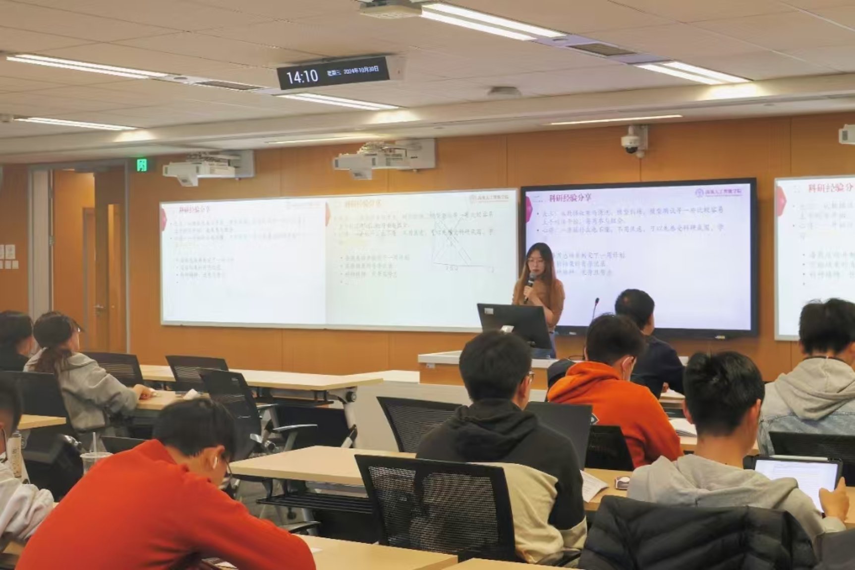 2021级本科生张冰姿同学结合个人科研经历,介绍了科研活动带给自己的成长。她表示通过科研,自己的视野得到了开阔,代码能力、写作能力、文献阅读能力等都得到了提升、心态也变得更加稳定。她建议同学们在科研过程中保持好奇心和主动性,充分利用学院资源和平台,不断拓宽知识边界。