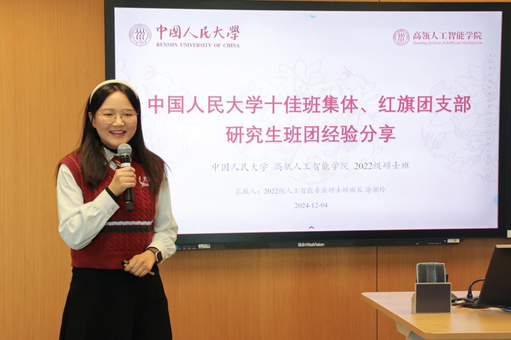 2024年十佳班集体获奖班级2021级本科2班班长秦颖,示范班集体获奖班级2023级人工智能拔尖2班班长刘恒畅、班级辅导员代表王榕甄,2023年十佳班集体获奖班级2022级人工智能硕士班班长徐澜玲依次分享经验。