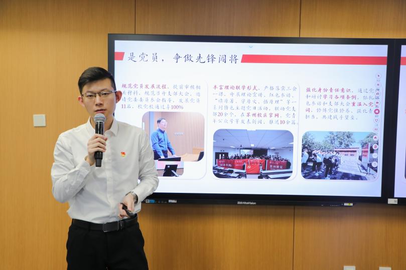 李熙通过视频展示了所在党支部的风采,以“搭建三个平台,建立三个标准,做好五个一”作为党支部工作规划,围绕“‘校园理论+AI向善’党建大不一样”的主题,分享了支部在引导青年党员树立远大志向、投身科技报国、深耕学术沃土、争做先锋闯将等方面的工作经验和感悟。