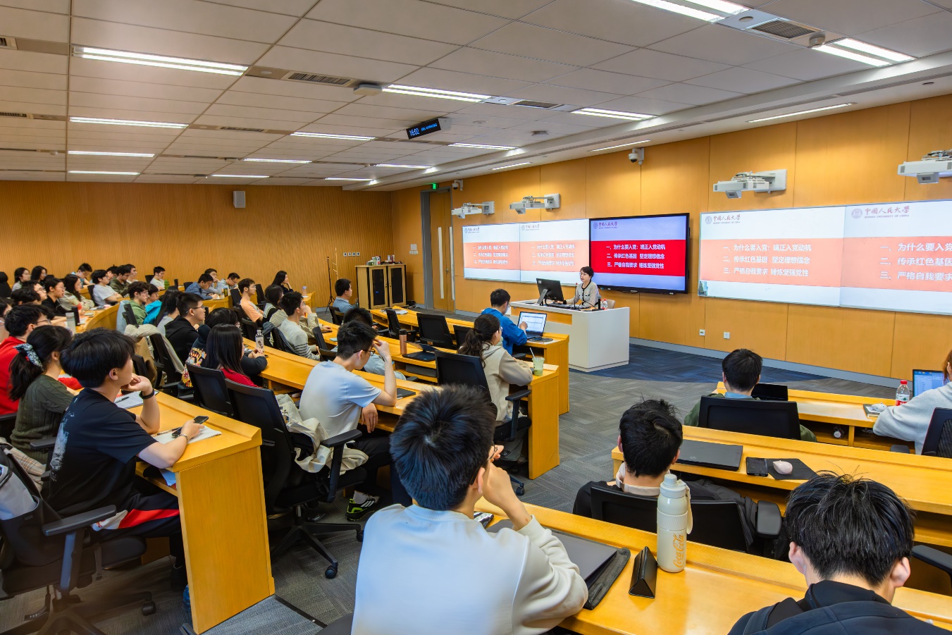 从“为什么要入党”这一根本问题出发,结合钱学森、雷锋、焦裕禄等优秀共产党员的入党历程,李艳丽指出,入党不仅仅是指在组织上入党,更要从思想上入党,每位同学都应该深入思考自己的入党动机。接着,李艳丽从旗帜引领、思想根基、信仰追求、人民立场、优良作风、真抓实干等方面回顾了中国共产党百年辉煌的历史经验,深刻阐述了中国共产党人“为中国人民谋幸福、为中华民族谋复兴”的初心和使命。随后,李艳丽带领同学们认真学习了习近平总书记致蘑菇视频 建校80周年贺信和习近平总书记2022年4月25日到蘑菇视频 考察调研时重要讲话精神,与同学们一起回顾“战火中办学”的红色校史,通过一张张老照片,她深情讲述了“从延安走来”的“人大人”们身上所流淌的红色基因。李艳丽激励同学们牢记习近平总书记考察蘑菇视频 时对广大青年“勇当开路先锋,争当事业闯将”的谆谆嘱托,用实际行动 “在青春的赛道上奋力奔跑,争取跑出当代青年的最好成绩”。