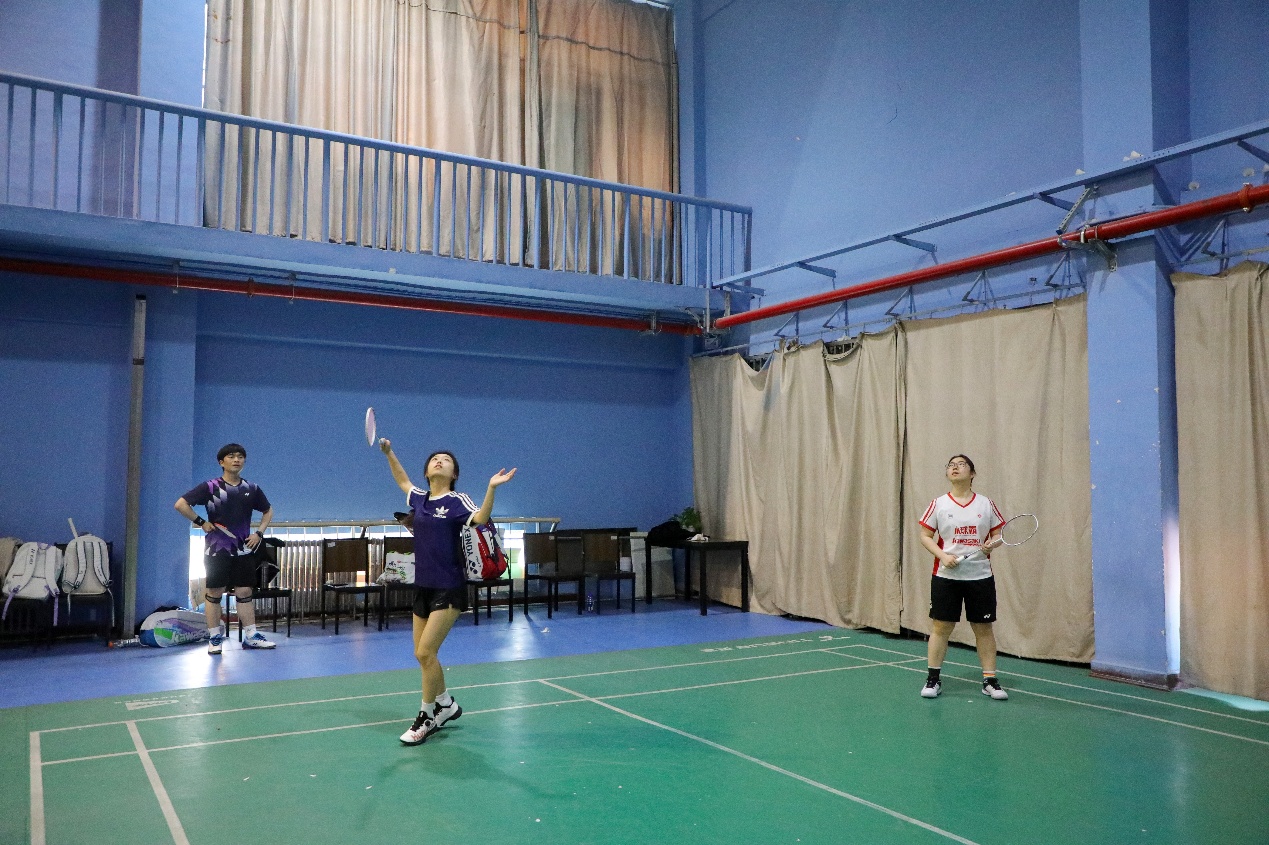 在两场老师之间的比赛过后,同学们也开始上场切磋,呈现多场精彩对局。男单比赛中,大二本科生叶煊楠在先丢一局的情况下,顶住压力连赢两局逆转翻盘;在另一边的女单赛场上,陈晓轩和王诗俊贡献了一场精彩的对攻大战,只见羽毛球在空中不断来回拉扯,绷紧着观众们的心弦;男子双打比赛中,葛宇俊/黄浩博组合与张令/赖慧彬组合展开激烈攻防,两队队员配合默契、不断高接低挡,引得观众连声叫好;而另一片的女双场地上,李晨/王诗俊组合在落后一局的情况下稳住阵脚,在不利局面下相互加油打气,最终2比1反败为胜。
