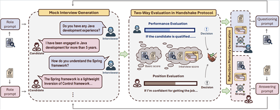 论文概述:在线招聘平台重塑了求职和招聘流程,使得改进人岗匹配的应用需求正在日益增长。传统方法通常依赖于分析简历和职位描述中的文本数据来学习它们之间的匹配函数,这限制了对有效招聘至关重要的交互动态。大型语言模型 (LLM) 的最新进展体现出其在模拟对话角色方面的巨大潜力,使其成为自适应和情境感知对话应用的理想选择。本文提出了 MockLLM,一个用于生成和评估模拟面试的全新框架。该系统分为两个主要部分:模拟面试生成和基于握手协议的双边评估。通过模拟面试官和候选人的角色,该系统实现了一致、协作的多智能体互动,从而促进了实时、双边的人岗匹配。为了持续提高匹配准确率,MockLLM 进一步融合了反思记忆生成和动态策略修改功能,可以根据以往的匹配经验来优化面试官和候选人的行为。我们基于在线招聘平台BOSS直聘的真实数据对MockLLM进行评估,实验结果表明,MockLLM在人岗匹配准确率、可扩展性以及不同部门的适应性方面均优于现有模型。这些结果展现了我们的MockLLM在候选人评估和在线招聘领域的巨大潜力。