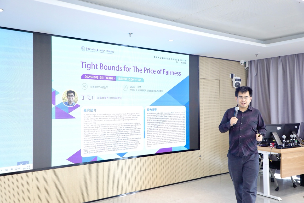 2025年6月12日,蘑菇视频 迎来了一场聚焦资源分配公平性与效率平衡的深度学术交流。加拿大麦吉尔大学副教授、德桑特尔荣誉学者丁弋川应邀访问,以“Tight Bounds for The Price of Fairness”为主题展开前沿报告,为师生揭示了公平准则在资源分配中的理论边界与实践意义。