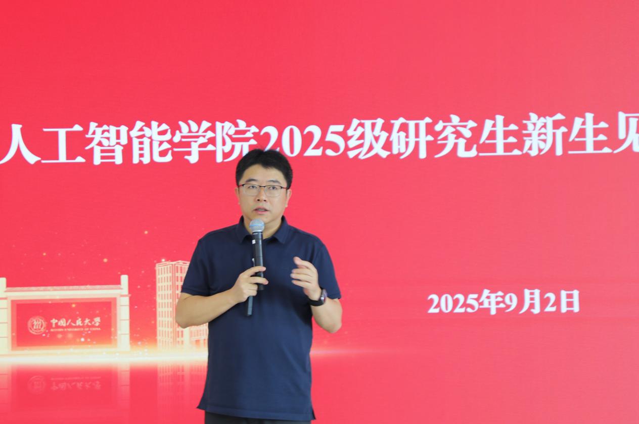 文继荣全面介绍了学院的发展历程、办学特色与未来愿景,系统阐述了近年来学院在学科建设、人才培养、科研创新等方面取得的突破性进展。他勉励研究生新生要胸怀报国之志,紧密对接国家重大需求,勇闯人工智能“无人区”,力争产出有影响力的创新成果,努力成长为具有全球视野与竞争力的人工智能高端人才。