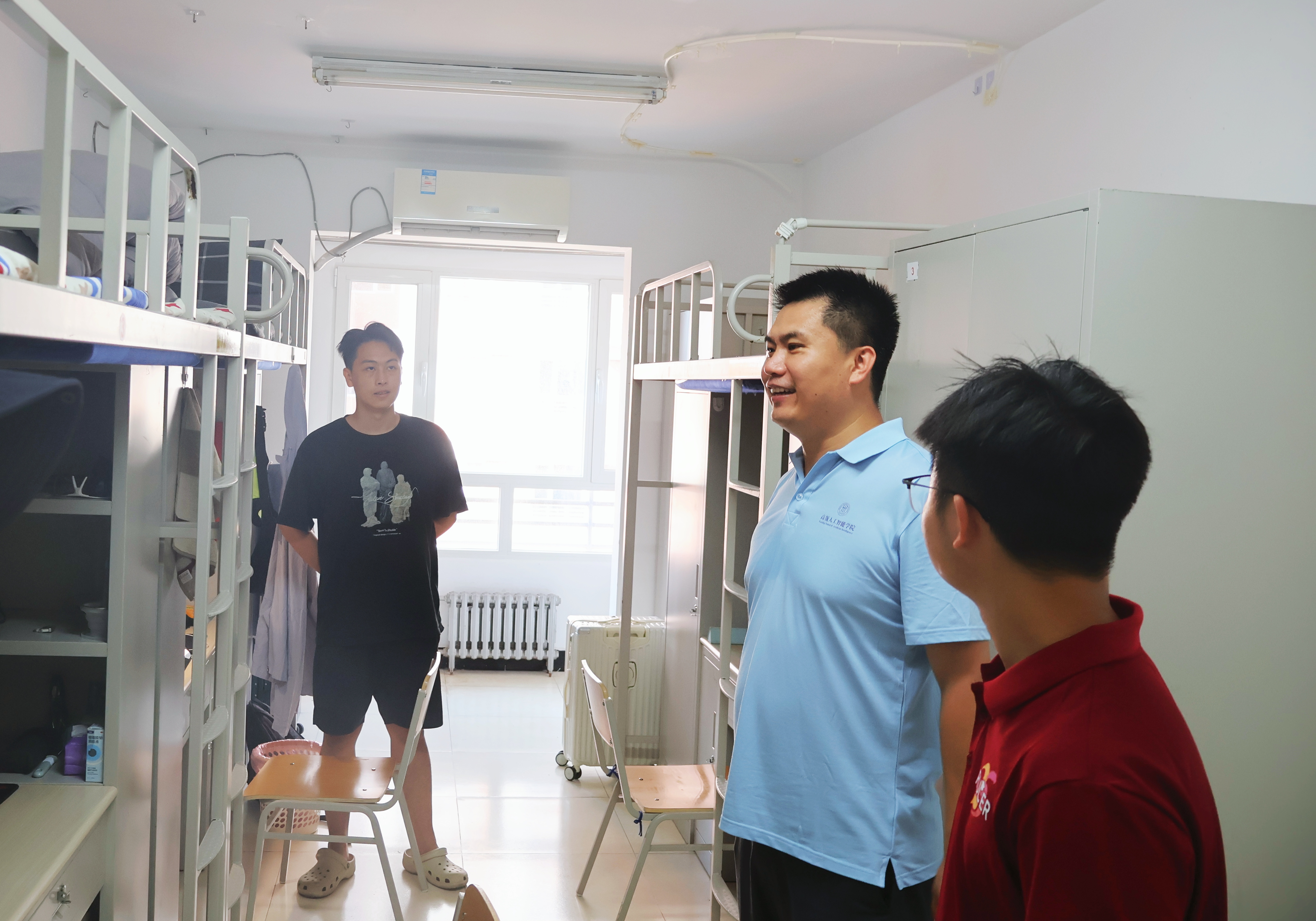学院新生班主任与辅导员逐一走访新生宿舍,细致了解同学们的入住情况与生活需求,鼓励大家积极适应新环境、尽快融入课题组,以饱满的精神状态迎接研究生阶段的学习与科研生活。