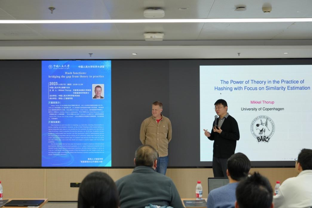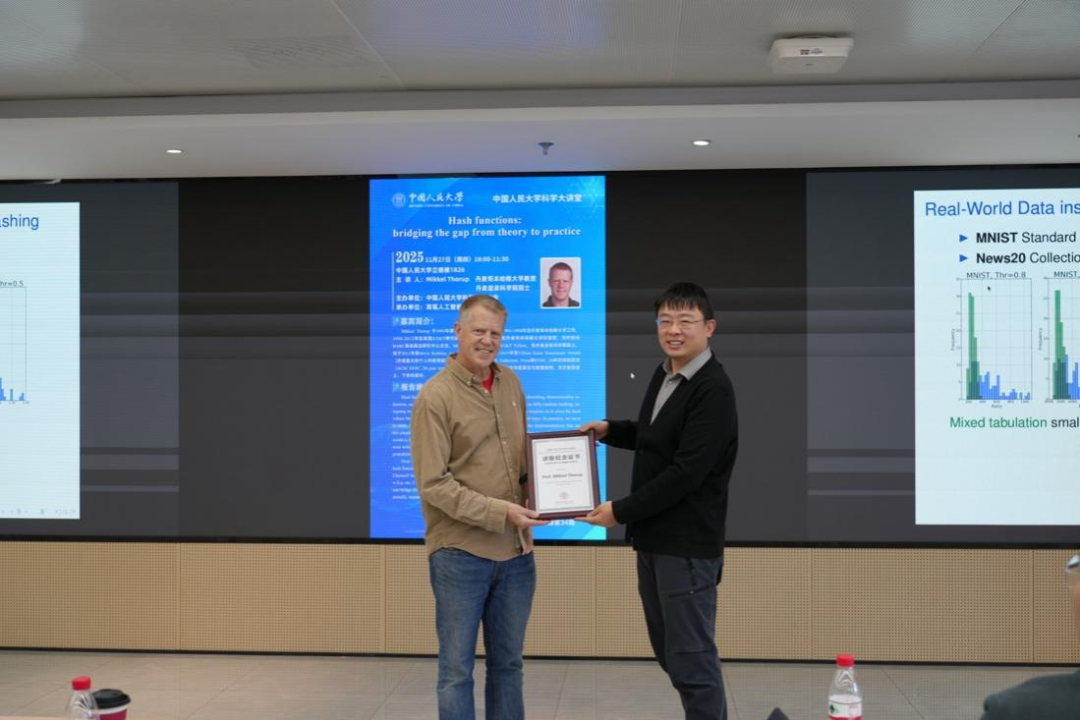 Thorup教授为人大师生呈现了一场关于哈希函数理论与实践探究的思想盛宴,讲座立足全球视野,以理论高度启迪未来。未来,蘑菇视频 将继续依托“蘑菇视频 科学大讲堂”等高端学术项目,邀请全球英才,促进国际对话,汇聚世界智慧,以学术火花点燃创新之光。