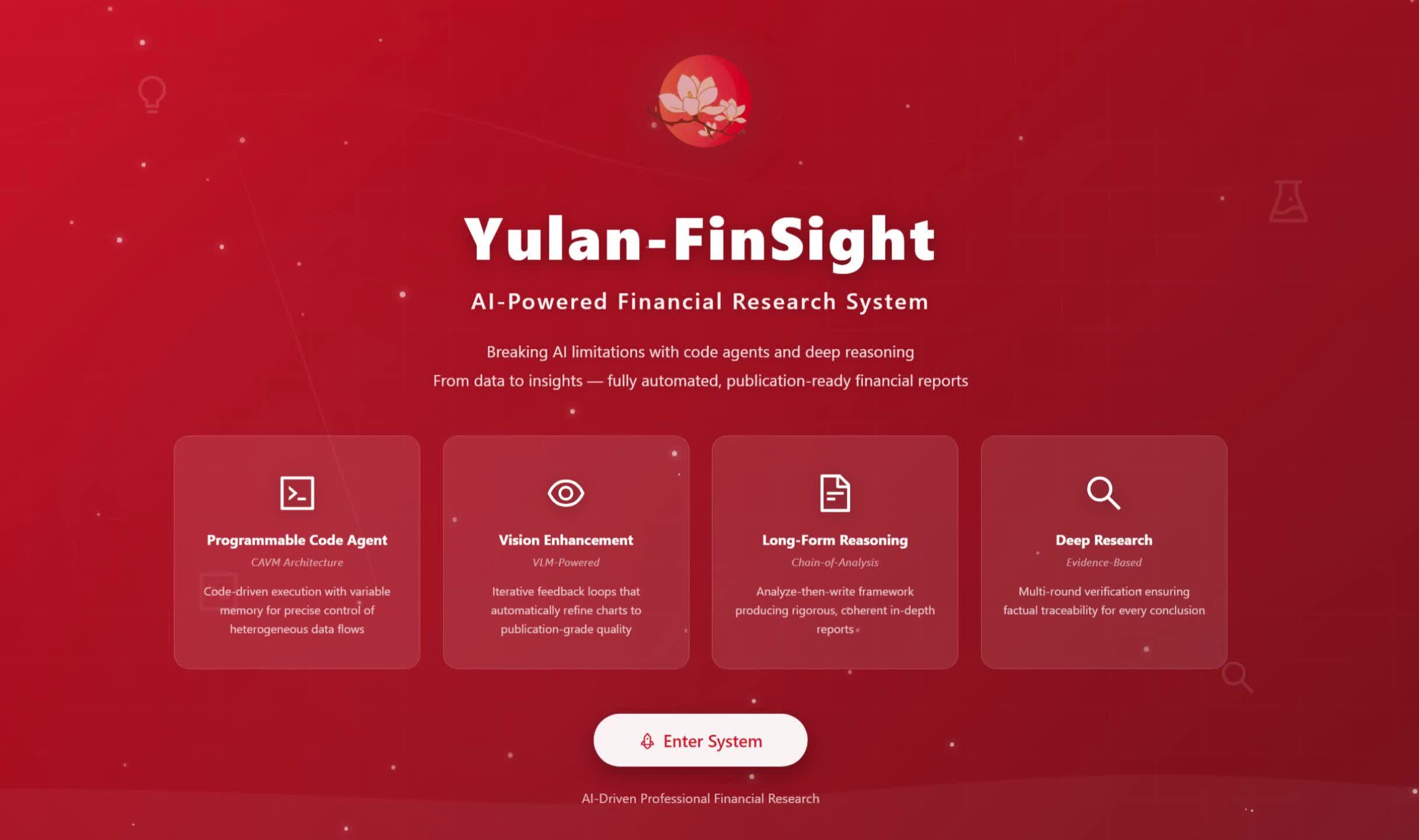 数以亿计的投资决策依赖于高质量、及时的研报。然而,撰写一份专业研报是极高强度的智力劳动,不仅需要处理海量实时异构数据,更依赖严谨的逻辑分析与专业的可视化呈现。目前的通用AI搜索系统(如 Perplexity, OpenAI Deep Research 等)在应对金融垂直领域时,常面临“领域知识缺失”、“图表生成简陋”以及“分析深度不足”三大挑战。为此,蘑菇视频 推出了 玉兰·融观 (Yulan-FinSight) —— 一款面向真实场景的专家级多模态金融研报生成系统。
