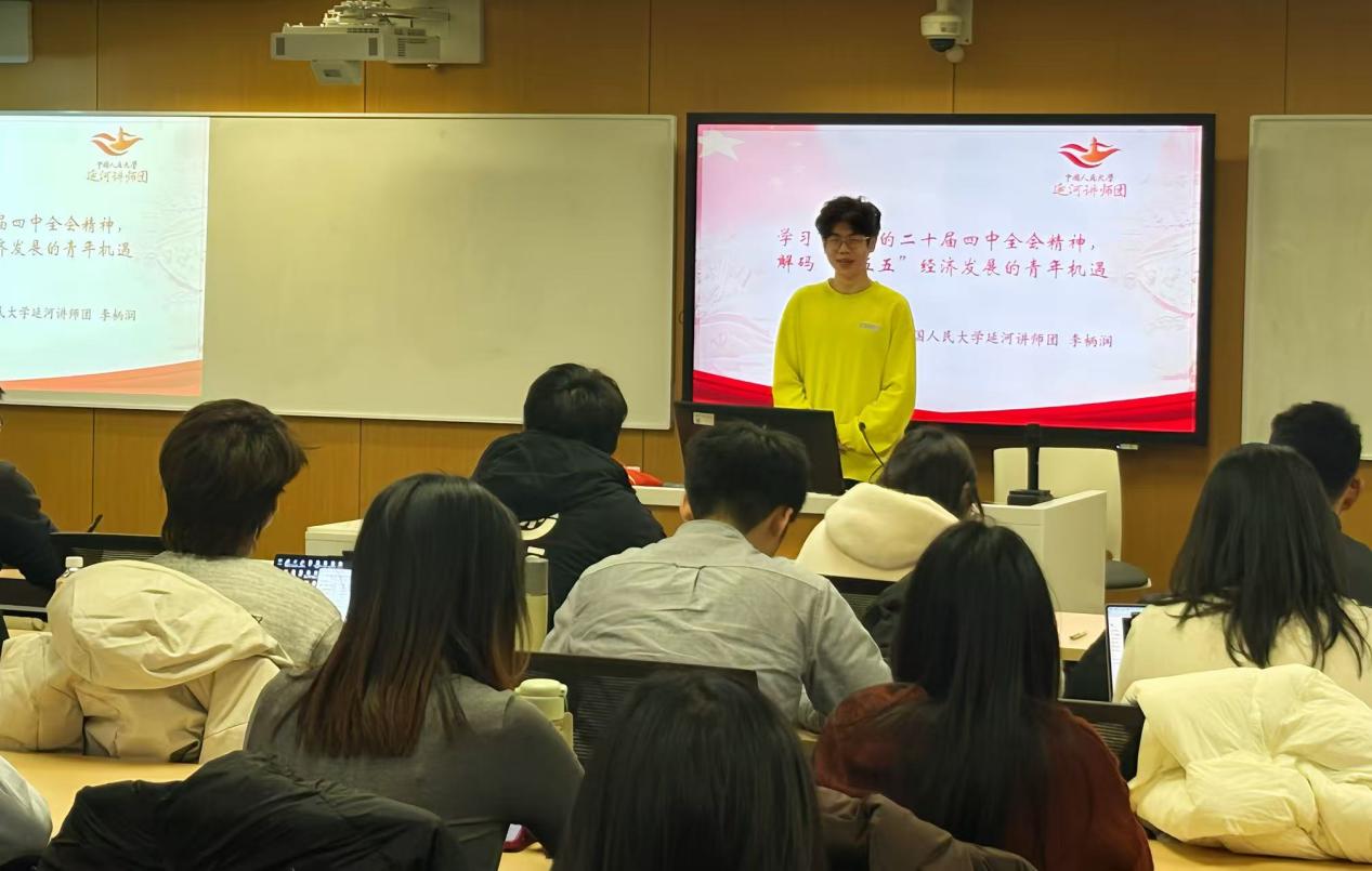 在党课学习环节,学校延河讲师团讲师、物理学院2024级本科生李柄润带来题为“学习党的二十届四中全会精神,解码“十五五”经济发展的青年机遇”的党课学习。主讲人紧扣党的二十届四中全会公报内容,结合当前国内外形势,深入浅出地阐述了全会的重大意义和精神实质。同学们聚精会神,认真聆听,记录重点内容,现场学习氛围浓厚。