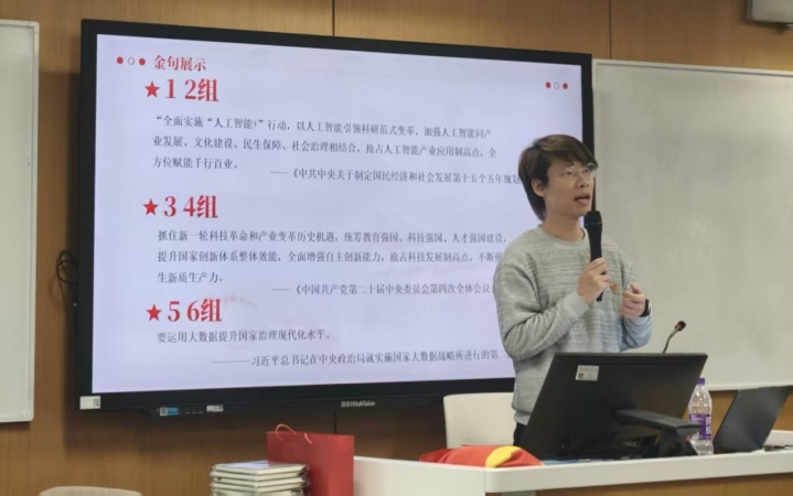 理论学习结束后,进入了本次活动的核心环节——“金句讨论”。主持人给出了三段紧扣时代脉搏、体现学科交叉特色的金句,供各小组讨论学习。