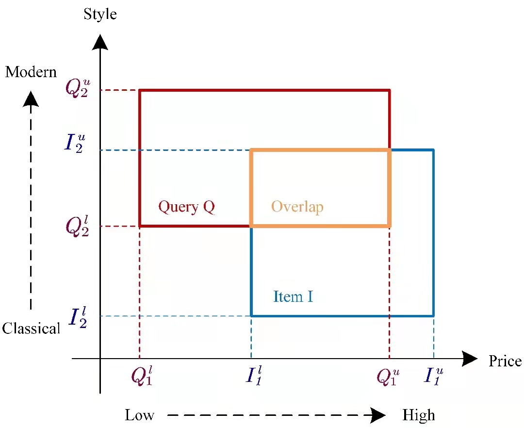 论文概述:排序作为信息检索中最重要的任务之一。随着深度表示学习的发展,已有研究提出将查询和文档都编码为向量,并根据向量空间中的内积或距离度量得分进行排序。然而,基于向量的排序模型在有效性和效率方面存在不足。在有效性上,它们缺乏内在的模拟排序任务中查询和文档的多样性和不确定性能力。在效率上,对大规模文档向量集合中执行最近邻搜索可能较为耗时。在本文工作中,我们利用近期提出的probabilitic box embedding进行有效和高效率的排序,其中查询和文档被参数化为高维轴对齐超矩形。在提高有效性上,我们利用box embedding对应的超矩形之间的重叠关系来建模多样性和不确定性,并证明这种重叠度量是一种核函数,可用于其他基于核的方法。在提高检索效率上,我们提出了一种基于box embedding的索引方法,该方法可以安全地过滤无关的文档,从而减少检索延迟。我们进一步设计了一种训练策略,有效的增加了检索过程中可过滤的不相关文档的比例。在公开数据集上的实验表明,box embedding和基于box embedding的索引在文档检索和商品推荐两个任务上取得了较好的排序性能和检索效率。