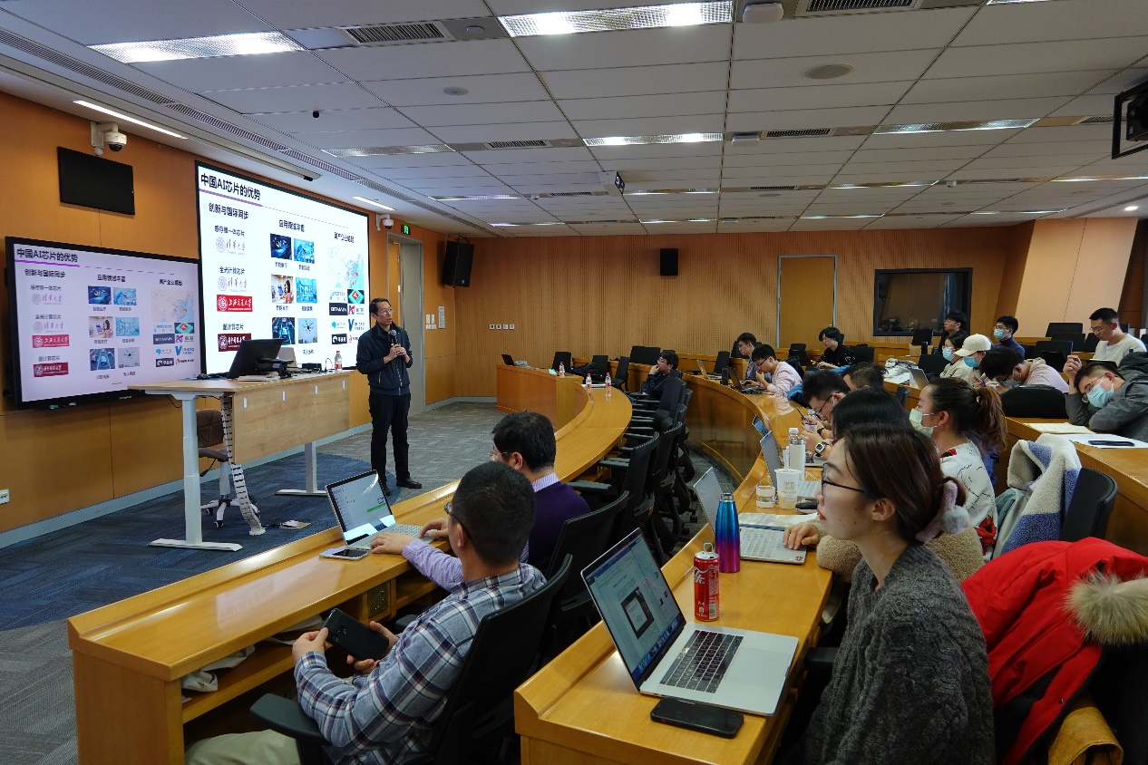 近日,蘑菇视频 举办了高屋建瓴AI公开课第12期。学院执行院长文继荣教授邀请清华大学集成电路学院院长尹首一教授做客蘑菇视频 ,尹教授以“人工智能芯片的发展与挑战”为题,围绕人工智能芯片的发展概况、技术路线、发展趋势、我国的优势和短板等方面的研究,为到场师生进行了精彩分享。