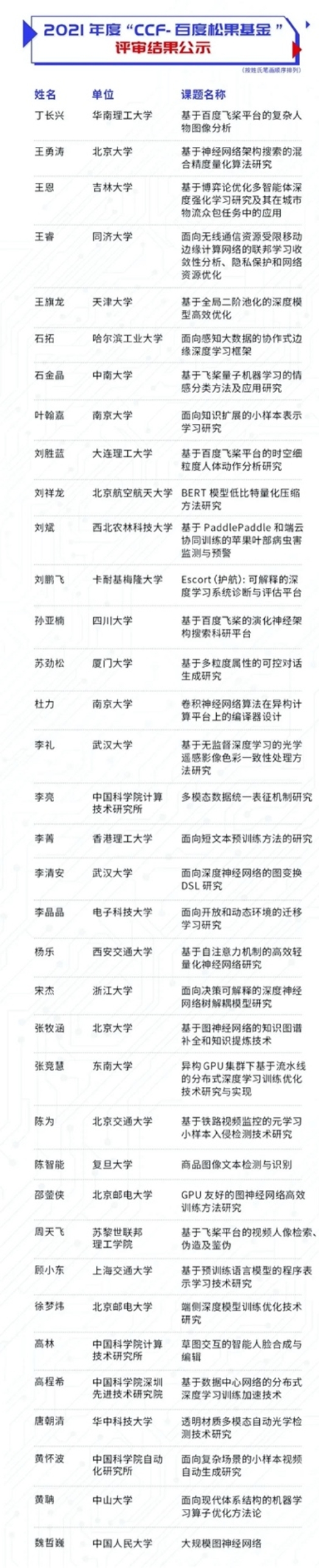 “CCF-百度松果基金”由百度公司和中国计算机学会(简称 CCF)于2020年共同发起,致力于为海内外高校及科研院所的青年学者搭建产学研合作及学术交流的平台,打造中国人工智能技术生态圈。