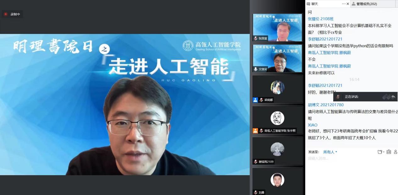 最后,文继荣院长作总结发言。他对明理书院党支部书记安志伟等领导莅临支持表示感谢,并期待明理书院2021级本科生同学选择引领未来的人工智能专业,加入蘑菇视频 ,一起开创智能而有温度的未来。