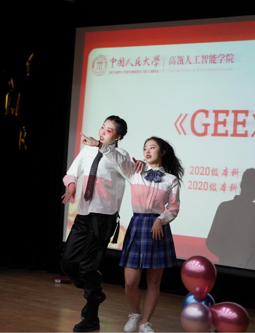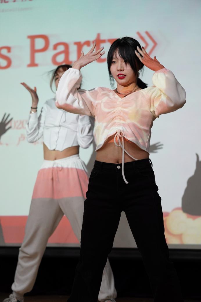 致辞过后,精彩表演正式开始。2020级本科生刘保莉、于铭两名同学带来的一支热情洋溢、甜度满分的双人舞《Gee》,拉开了晚会表演的帷幕,瞬间点燃全场氛围。