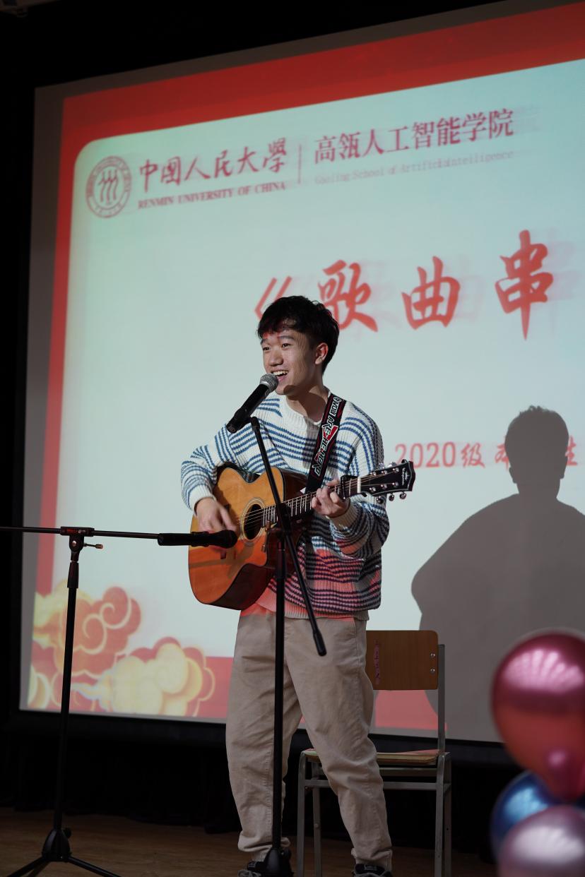 紧承着《十年》营造的氛围,2020级本科生赵宇帆同学以吉他弹唱,带来了《喜欢一个人》与《Last Dance》的歌曲串烧。全场大合唱与手机闪光灯营造的星光点点,让人仿佛置身演唱会。