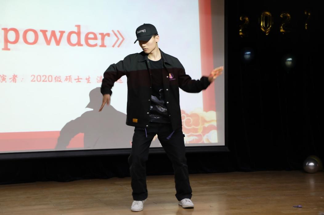 而2020级硕士生温静远同学炫酷的街舞《Powder》呈现了一场身体力量与音乐结合的视听盛宴,将大家从淡淡平静中带回到炽热来。
