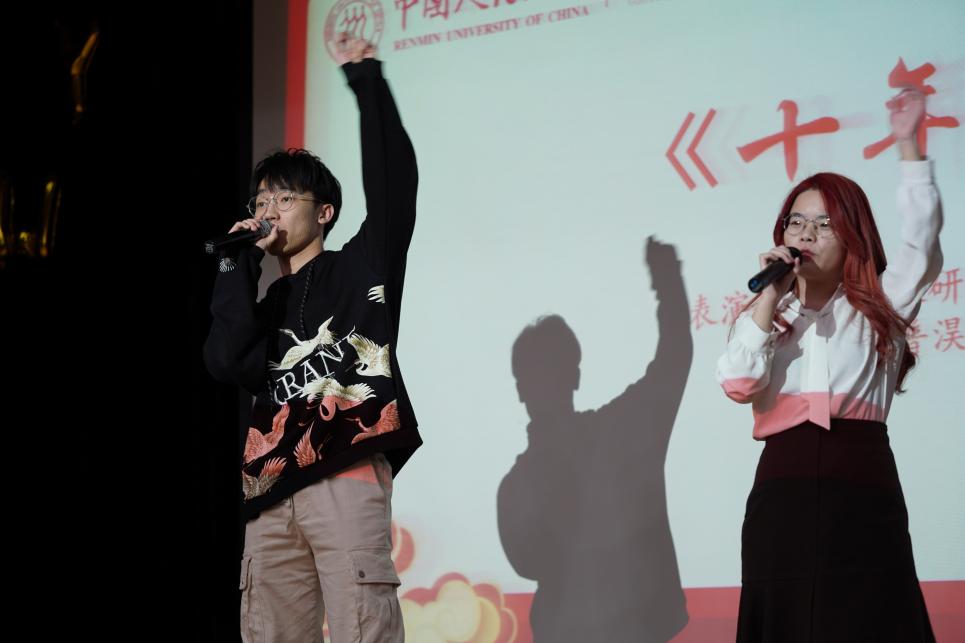 “十年之前,我不认识你,你不属于我”,这样的经典歌曲也没有缺席。2021级博士生卫雅珂、2021级硕士生普淏同学对唱的一首《十年》,用真挚的情绪打动了现场所有人。