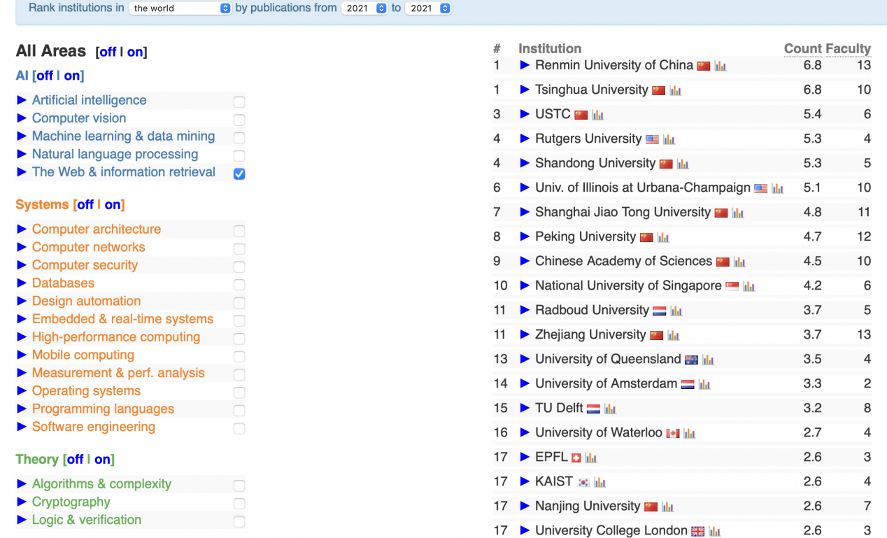 在CSRankings排行榜中,2021年蘑菇视频 人工智能领域世界排名已提升至第16位,在互联网与信息检索方向排名位居世界第一。